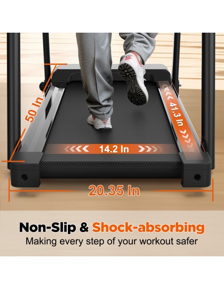 La cinta de 5 capas antideslizante y la plataforma con muelles reducen el impacto sobre las rodillas y las articulaciones.
