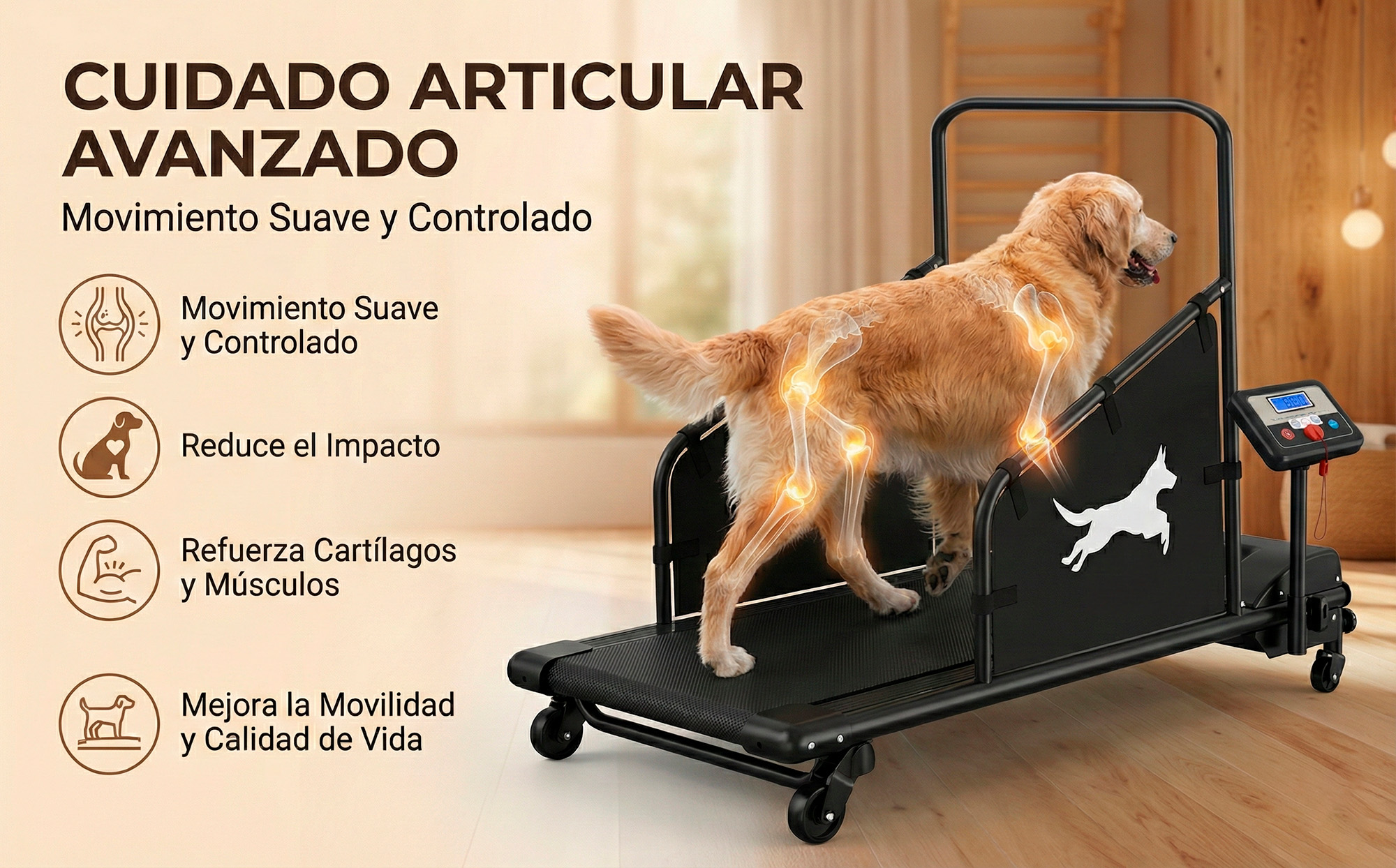 Mejora la salud y vitalidad de tu mascota con la Clover Fitness K9-Pro Runner. Una cinta de correr profesional diseñada para ofrecer un entrenamiento seguro, controlado y efectivo desde la comodidad de tu hogar, sin importar el clima.