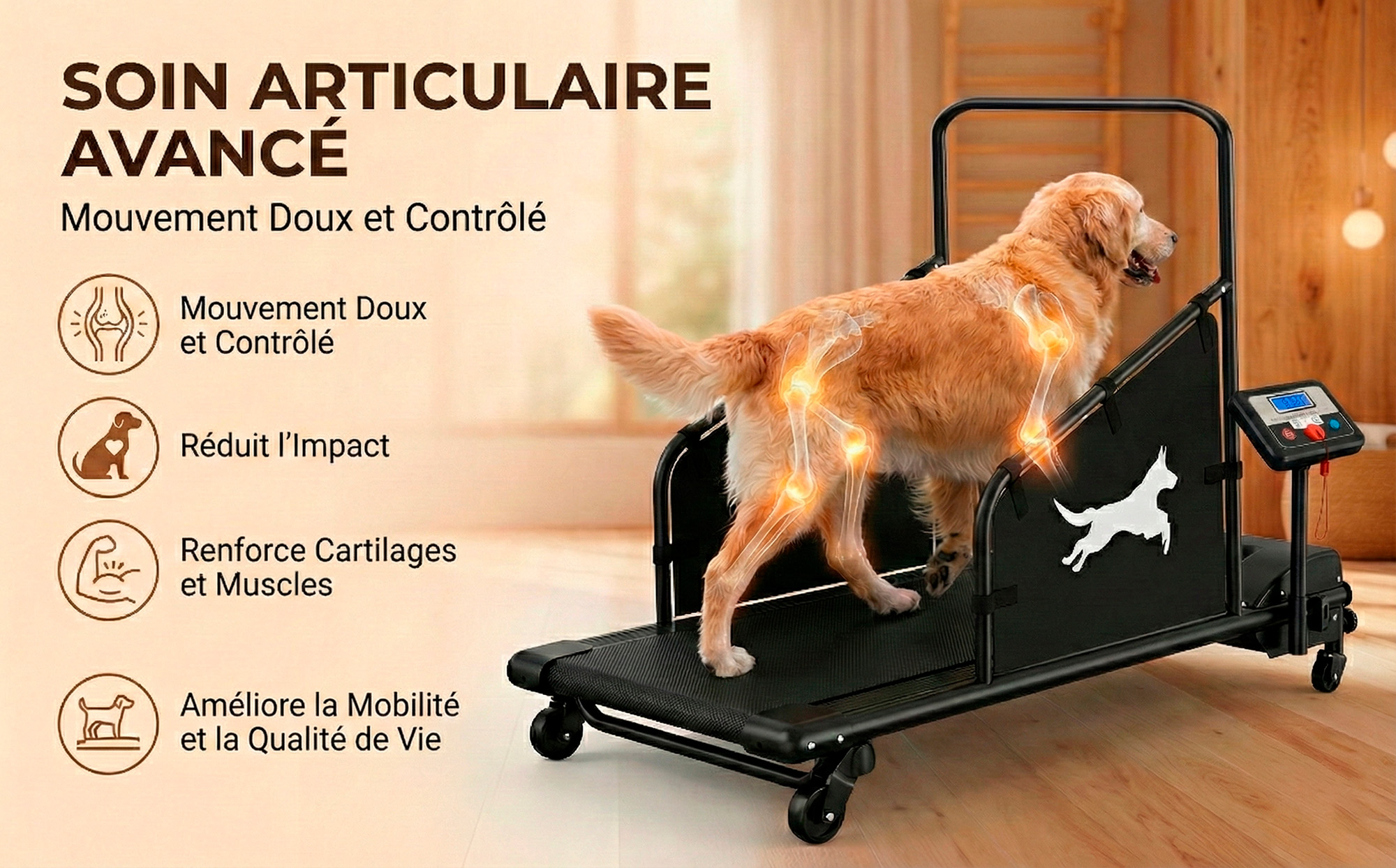 Praticité: Design compact équipé de roulettes pour un rangement facile. Offrez à votre chien l'excellence Clover Fitness !