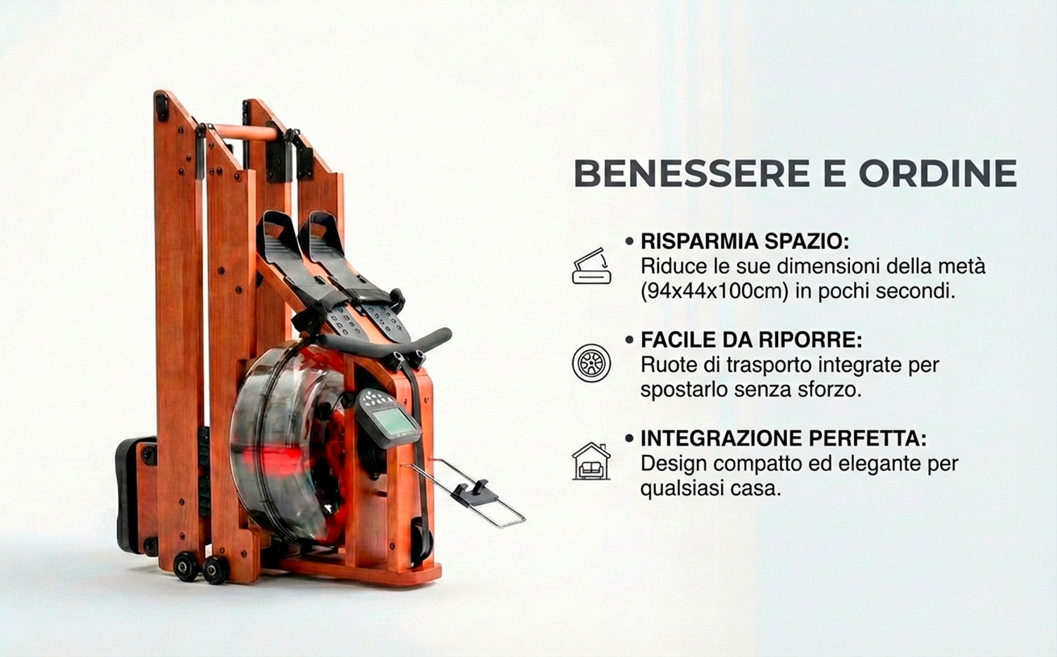 NaturaRow Elite: Vogatore ad Acqua Pieghevole in Legno Massello